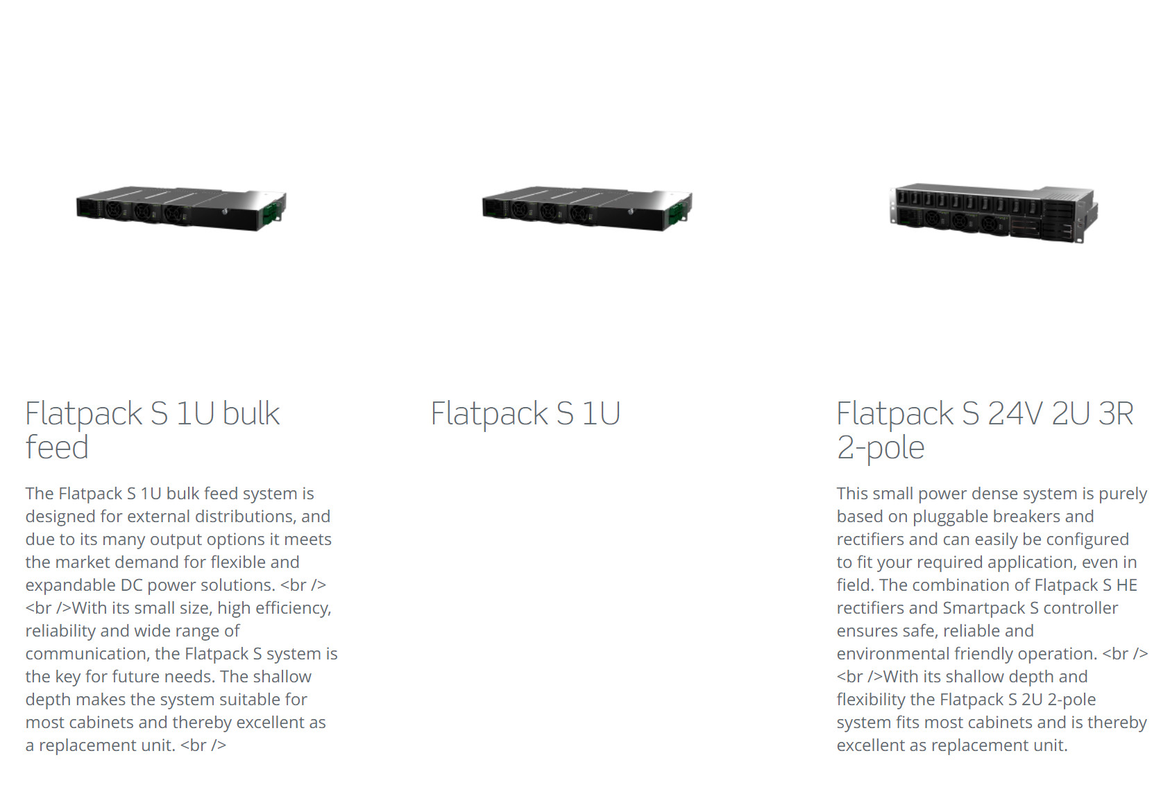 Zaprojektowany dla platformy systemu Flatpack S, Smartpack S znajduje zastosowanie w wielu aplikacjach o ograniczonej przestrzeni. Używany w szafach zasilających o wysokości 1U i głębokości 265 mm, Smartpack S oferuje kompleksowe monitorowanie i kontrolę systemu 2-3kW zajmującego mniej niż 6 litrów.