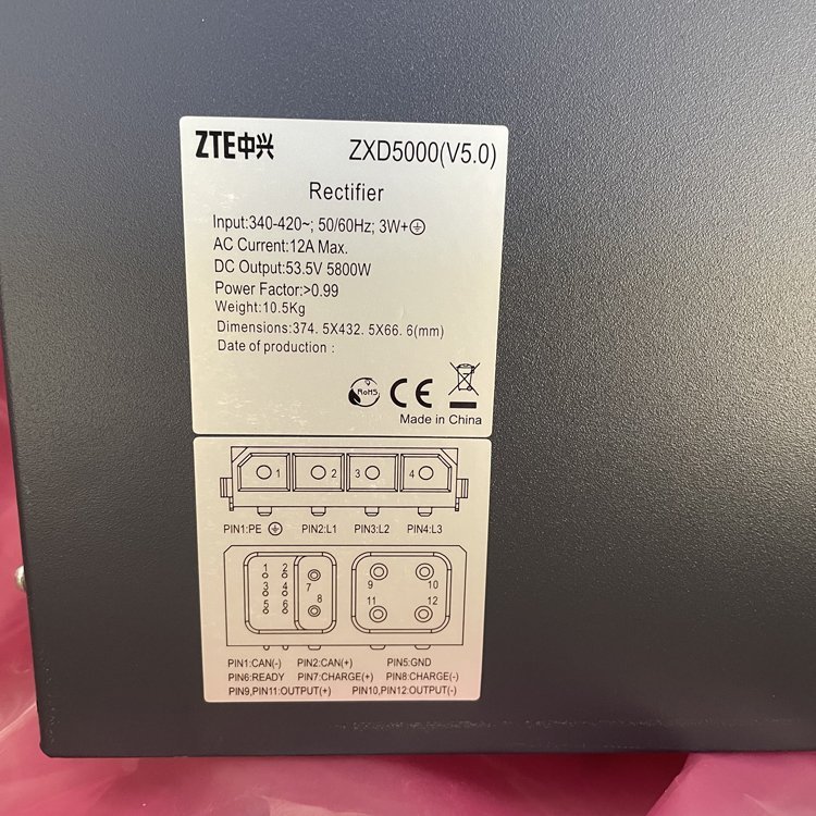 Prostowniki ZXD5000 są instalowane w szafie prostownika (RECR). Wykorzystuje zaawansowaną technologię prostowników impulsowych, z nominalnym wejściem trójfazowym AC 380VAC, a moc wyjściowa znamionowa wynosi 6kW. Szczytowa sprawność prostownika przekracza 96,2%.